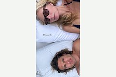 На размещенном снимке 51-летняя звезда «Стального человека» стала, лежа на белоснежной подушке, с супругом, Брэдом Фэлчаком. Знаменитость примерила темное бикини, состоящее из бюстгальтера на тонких бретелях и плавок.